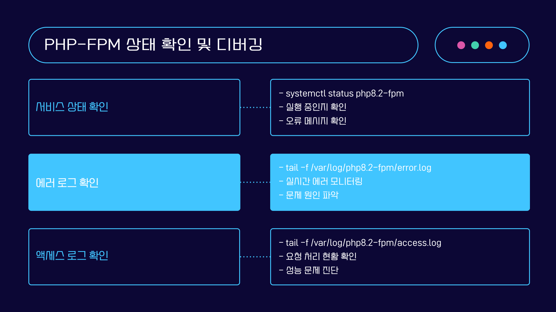 PHP-FPM 설정 후, 서비스 상태를 확인하고 로그를 점검하는 것이 중요합니다.