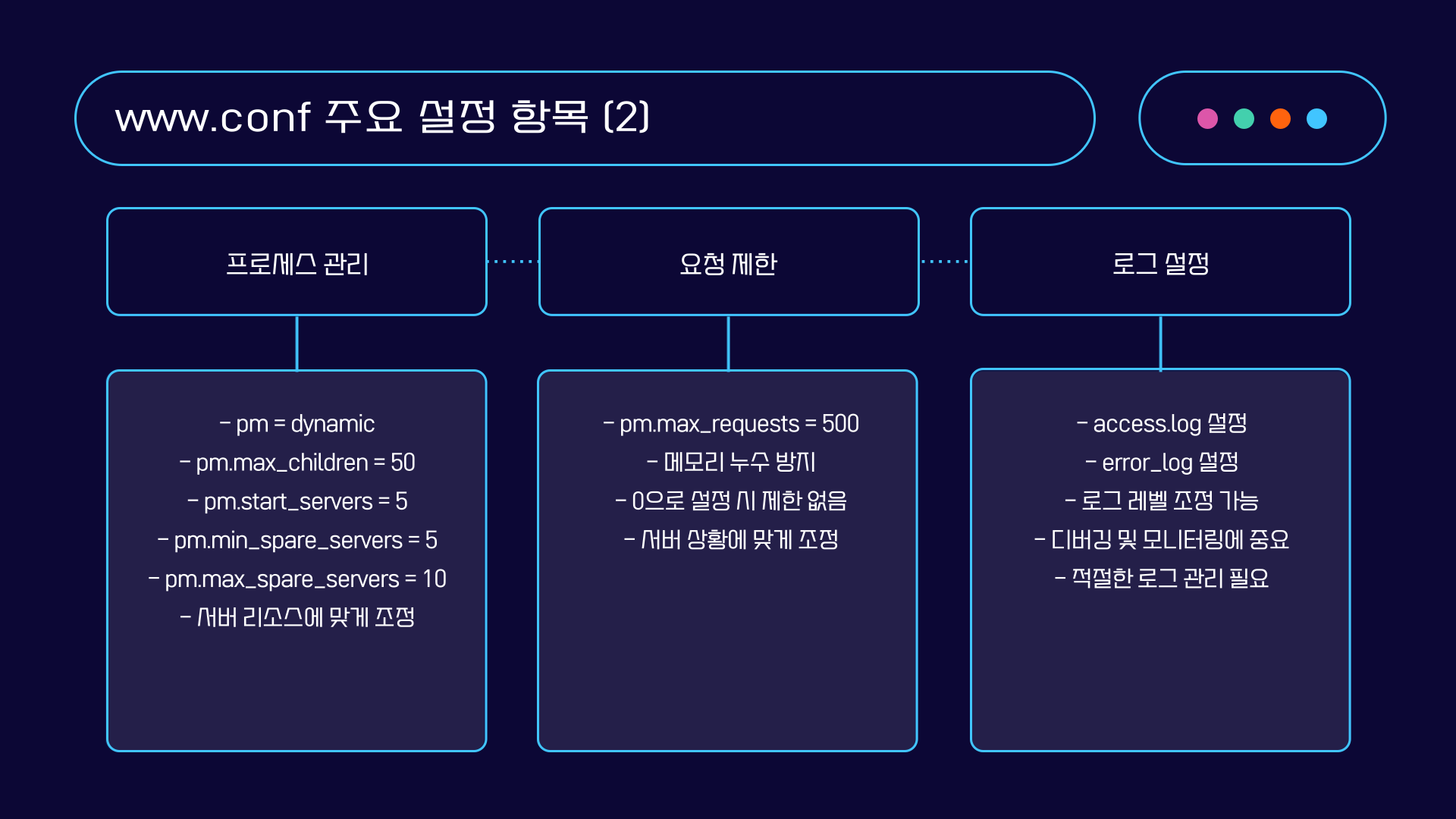 아래는 www.conf 파일의 핵심 설정 항목들입니다.