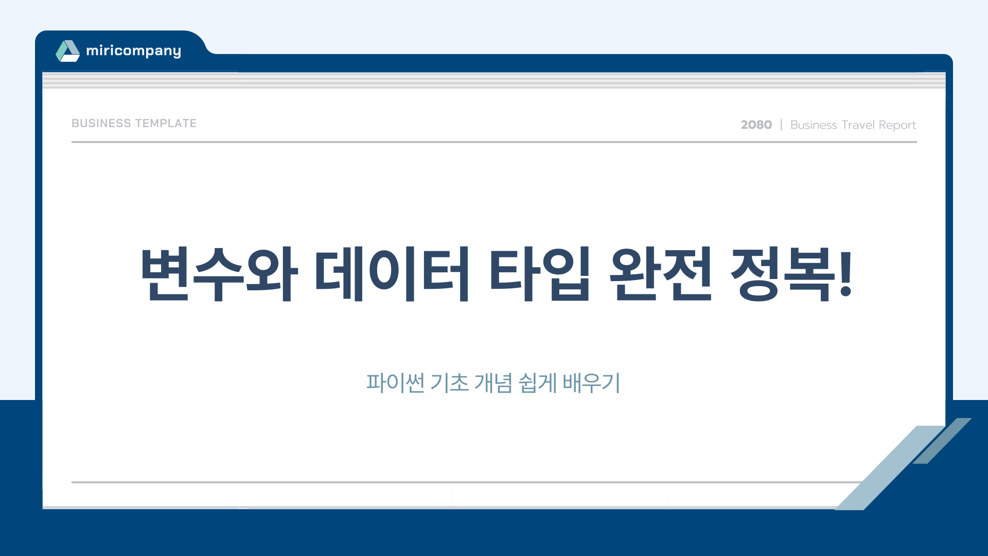 변수는 다양한 유형의 데이터를 저장할 수 있으며, 이를 **데이터 타입(Data Type)**이라고 합니다. 파이썬에서 기본적으로 제공하는 데이터 타입에는 다음과 같은 것들이 있습니다.